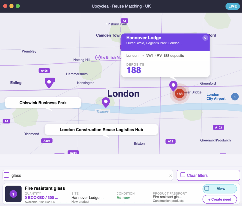 Before any demolition decision, the AI proposes circular ecosystems—what can be reused or upcycled, by whom, and with what carbon savings—providing a strong economic and environmental case ahead of the decision.