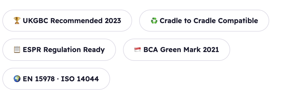 The library also contains nearly 2,000 generic passports created by Upcyclea based on official EPD default environmental data — ensuring coverage even where manufacturer-declared data is not yet available.