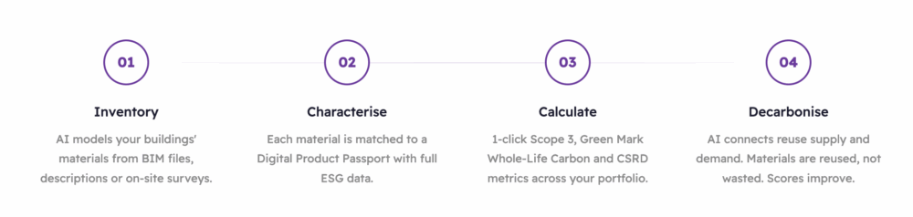managed material banks — enabling Real-time ESG & Scope 3 calculation, maximised reuse,