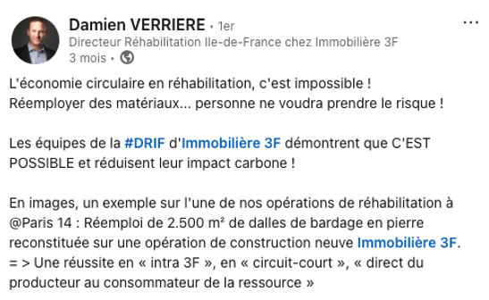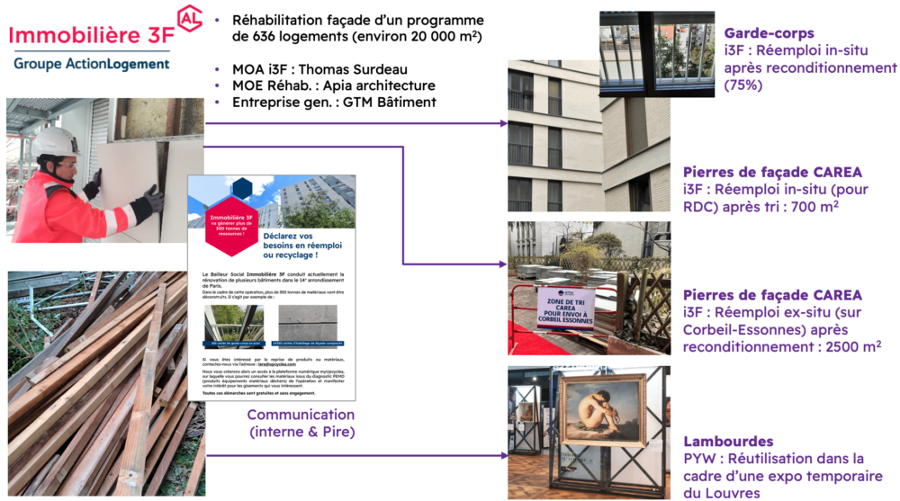 Rejoignez des dizaines de bailleurs, foncières et entreprises partenaires pour maximiser le réemploi sur vos opérations, en partageant vos diagnostics PEMD et en consultant ceux des autres pour déclarer vos besoins, et recevoir des offres de réemploi.