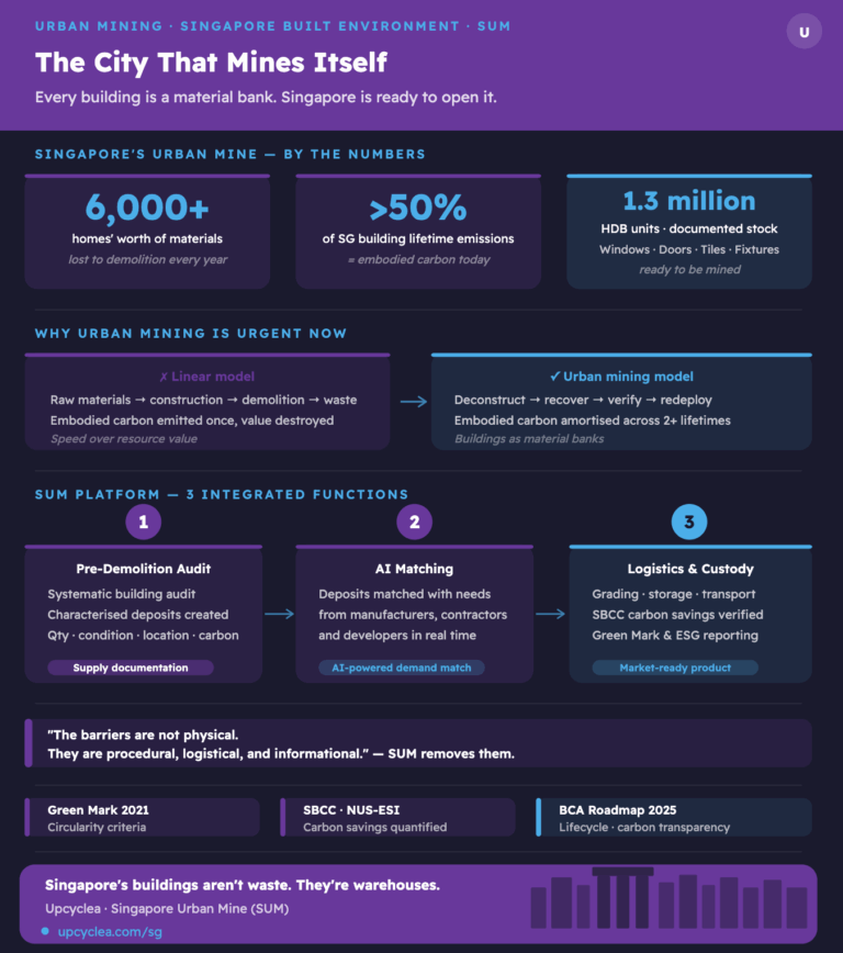 Published by Upcyclea | Singapore Resources | Built Environment Decarbonisation The City That Mines Itself Singapore has always been a city of …